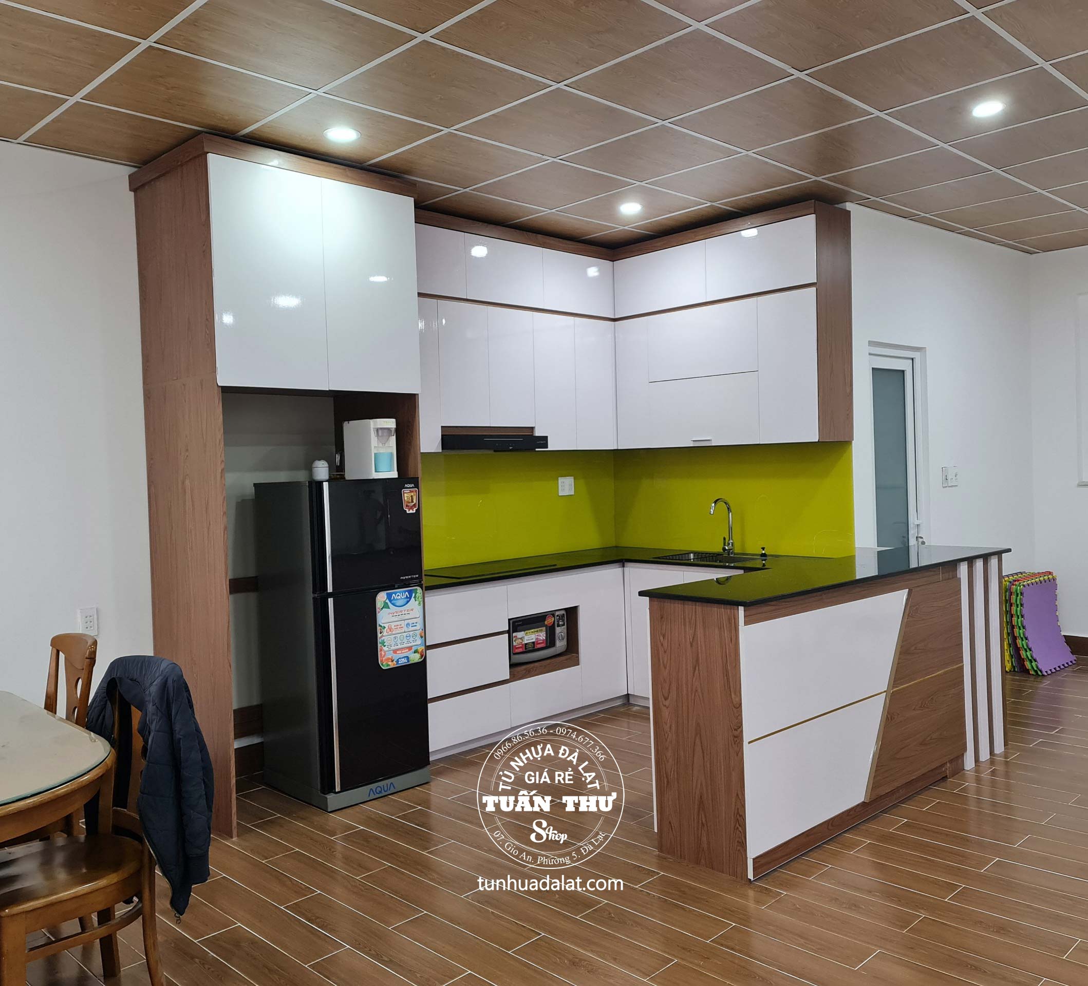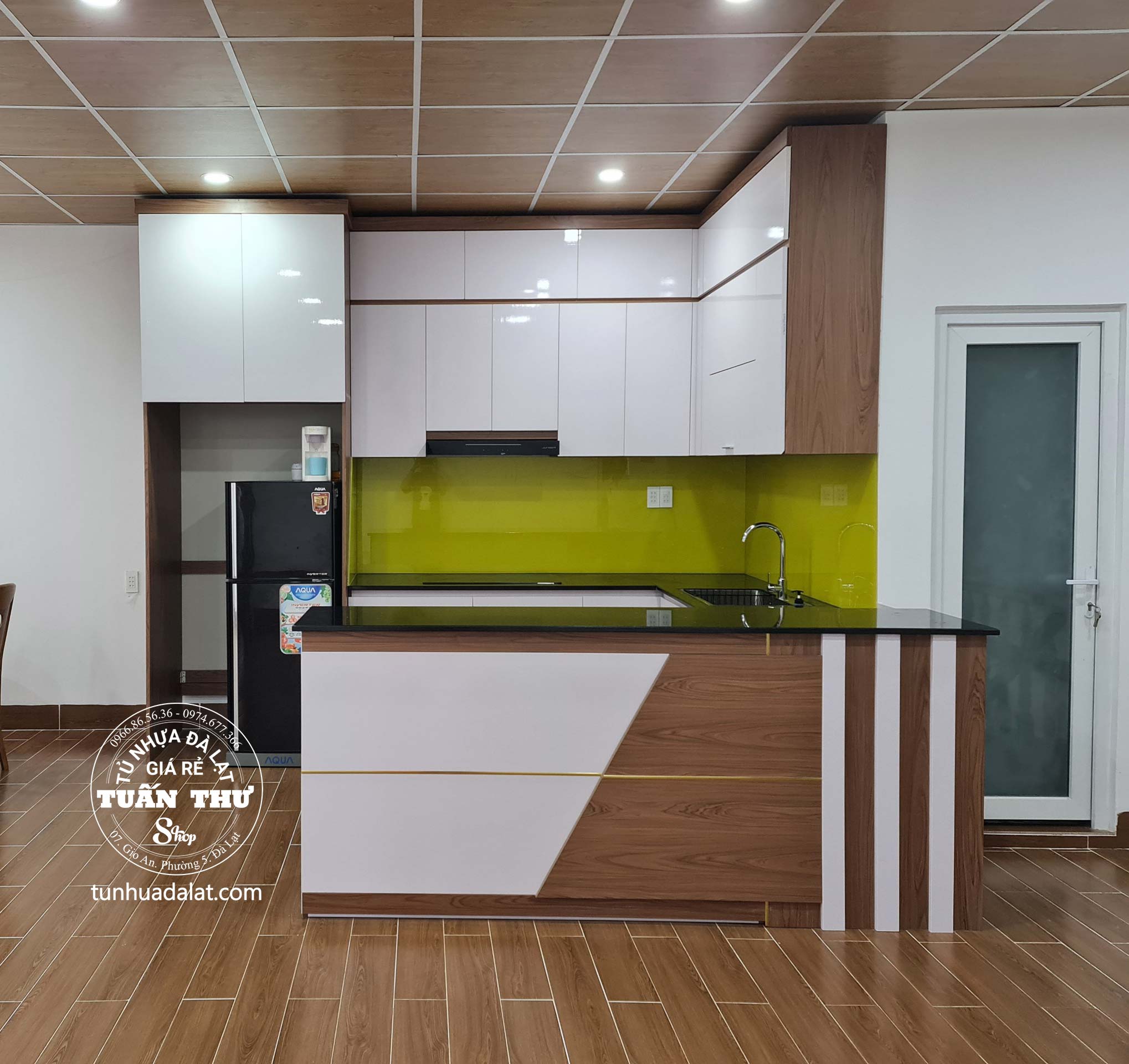 -Tủ bếp nhựa cánh Acrylic bóng gương chống trầy